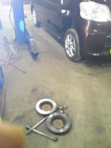 今回は、ダイハツ タントのフロント・スタビ・リンク、フロント・ブレーキパッド、ブレーキ・ディスクの交換をさせて頂きました。
