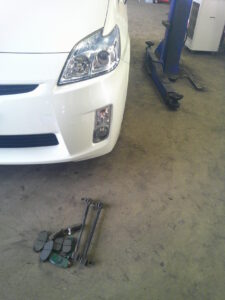 今回は、トヨタ プリウスのフロント・スタビ・リンク、フロント・ブレーキパッド、リヤ・ブレーキパッドの交換をさせて頂きました。