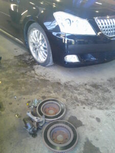 今回は、トヨタ クラウンマジェスタのフロント・ブレーキパッド、ブレーキ・ディスク、右ブレーキ・キャリパー(中古品)の交換をさせて頂きました。