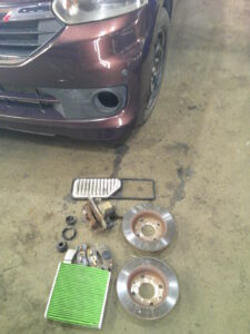 今回は、トヨタ ピクシスエポックのエアクリーナー・エレメント、エアコンフィルター、フロント・ブレーキパッド、ブレーキ・ディスク、左フロント・ブレーキ・キャリパー(中古品)の交換をさせて頂きました。