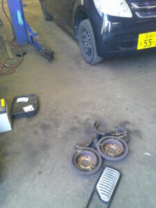 お客様より、車検でお預りをし点検をさせて頂きました所、エアクリーナーの汚れ、ブレーキパッドの摩耗、ブレーキ・ディスクのサビによる損傷・摩耗、ブレーキ・シューの摩耗などが確認されましたので交換をさせて頂きました。