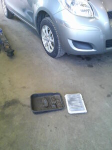 今回は、トヨタ ヴィッツのエアクリーナー・エレメント、フロント・ブレーキパッドの交換をさせて頂きました。