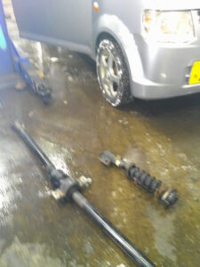 今回は、三菱 ekワゴンのプロペラ・シャフト(中古品)、右フロント・ショック・アブソーバ(中古品)の交換をさせて頂きました。