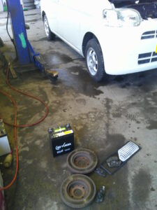 今回は、ダイハツ タントのエアクリーナー・エレメント、バッテリー、フロント・ブレーキパッド、ブレーキ・ディスクの交換をさせて頂きました。