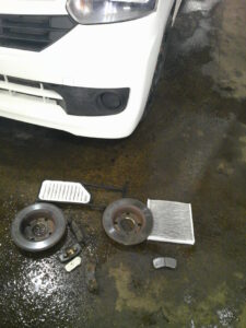 今回は、ダイハツ ミライースのエアクリーナー・エレメント、エアコンフィルター、右タイロッド・エンド・ブーツ、フロント・ブレーキパッド、ブレーキ・ディスクの交換をさせて頂きました。