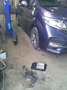 今回は、ホンダ ステップワゴンのエアクリーナー・エレメント、フロント・ロアー・ボール・ジョイント、フロント・ブレーキパッド、リヤ・ブレーキパッドの交換をさせて頂きました。