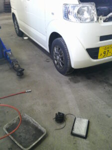 お客様より、車検でお預りをし点検をさせて頂きました所、エアクリーナーの汚れ、シャフト・ブーツの破れなどが確認されましたので交換をさせて頂きました。