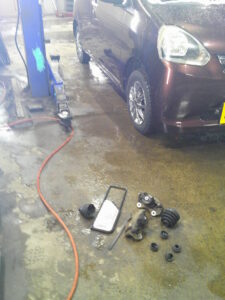 お客様より、車検でお預りをし点検をさせて頂きました所、エアクリーナーの汚れ、シャフト・ブーツの破れ、ロアー・ブーツの破れ、タイロッド・エンド・ブーツの破れ、ブレーキ・キャリパーの固着などが確認されましたので交換をさせて頂きました。