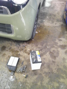 お客様より、車検でお預りをし点検をさせて頂きました所、エアクリーナーの汚れ、バッテリーの劣化、ブレーキパッドの摩耗などが確認されましたので交換をさせて頂きました。