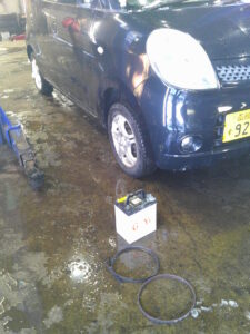 今回は、ニッサン モコのファンベルト、エアコンベルト、バッテリーの交換をさせて頂きました。
