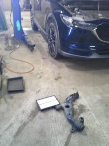 今回は、マツダ CX-5のエアクリーナー・エレメント、右フロント・ロアー・アームの交換をさせて頂きました。