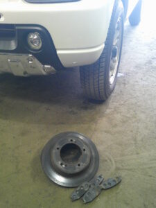 今回は、スズキ ジムニーのフロント・ブレーキパッド、ブレーキ・ディスクの交換をさせて頂きました。