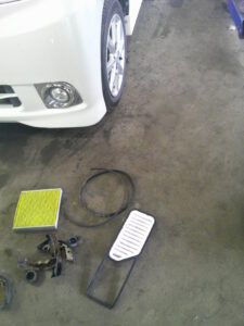 お客様より、車検でお預りをし点検をさせて頂きました所、エアクリーナーの汚れ、エアコンフィルターの汚れ、ベルトの亀裂・損傷、ロアー・ブーツの破れ、タイロッド・エンド・ブーツの破れ、ブレーキ・シューの摩耗などが確認されましたので交換をさせて頂きました。