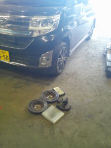 今回は、ダイハツ タントのエアクリーナー・エレメント、エアコンフィルター、フロント・ブレーキ・ディスク、リヤ・ブレーキ・シューの交換をさせて頂きました。