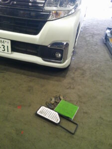 今回は、ダイハツ タントのエアクリーナー・エレメント、エアコンフィルター、フロント・ブレーキパッドの交換をさせて頂きました。